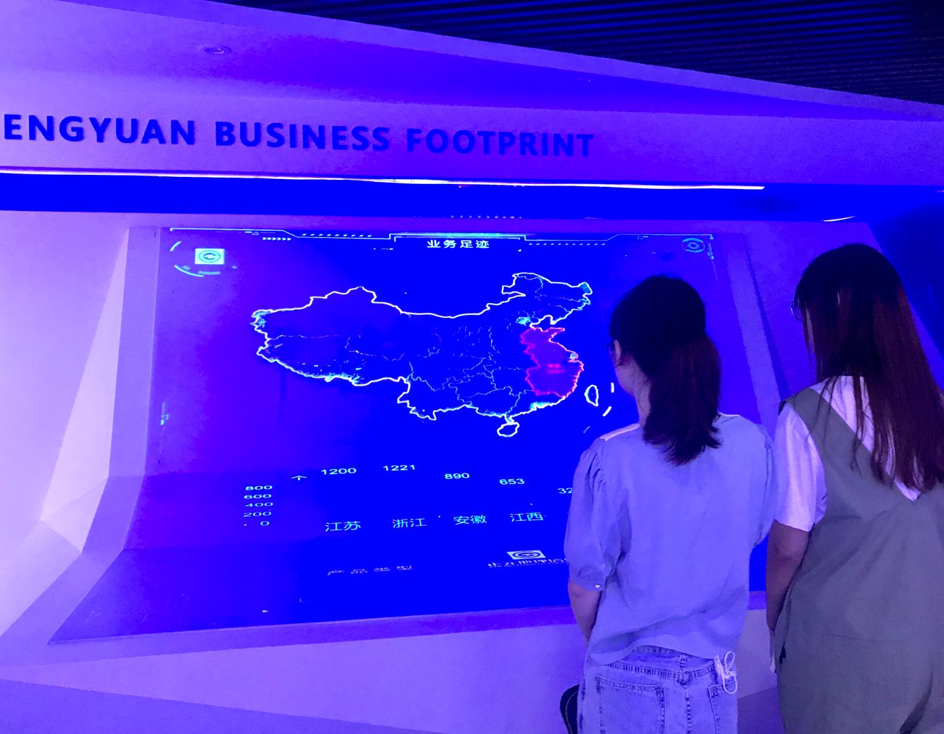 在地信小镇沈科长的带领下,实践团成员参观了当地四个地信类企业。通过实地参观企业的方式,实践团成员对地信产业有了更加深刻的认识。