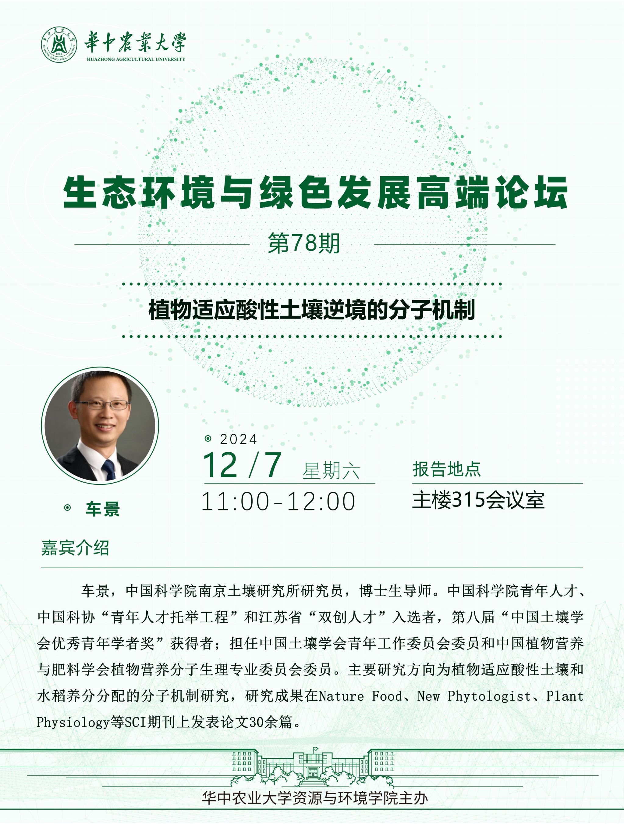 【高端论坛】第78期:植物适应酸性土壤逆境的分子机制