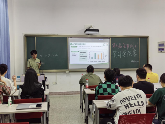 环工类2204班方姝婕代表“肥水智流自家田”团队首先阐述了我国严重紧缺的水资源、低效率的水分生产效率与化肥利用率、经受污染的农业环境、日益紧缺的农业劳动力等问题,并解释其团队的水肥一体化技术可以很好地将施肥与灌溉结合,可以很大程度上地实现环保、节水、节肥、省人工。在国家有利的政策推动下,水肥一体化技术的创新传播将会成为改变现代农业生产方式、提升农民生产效能的关键动作。